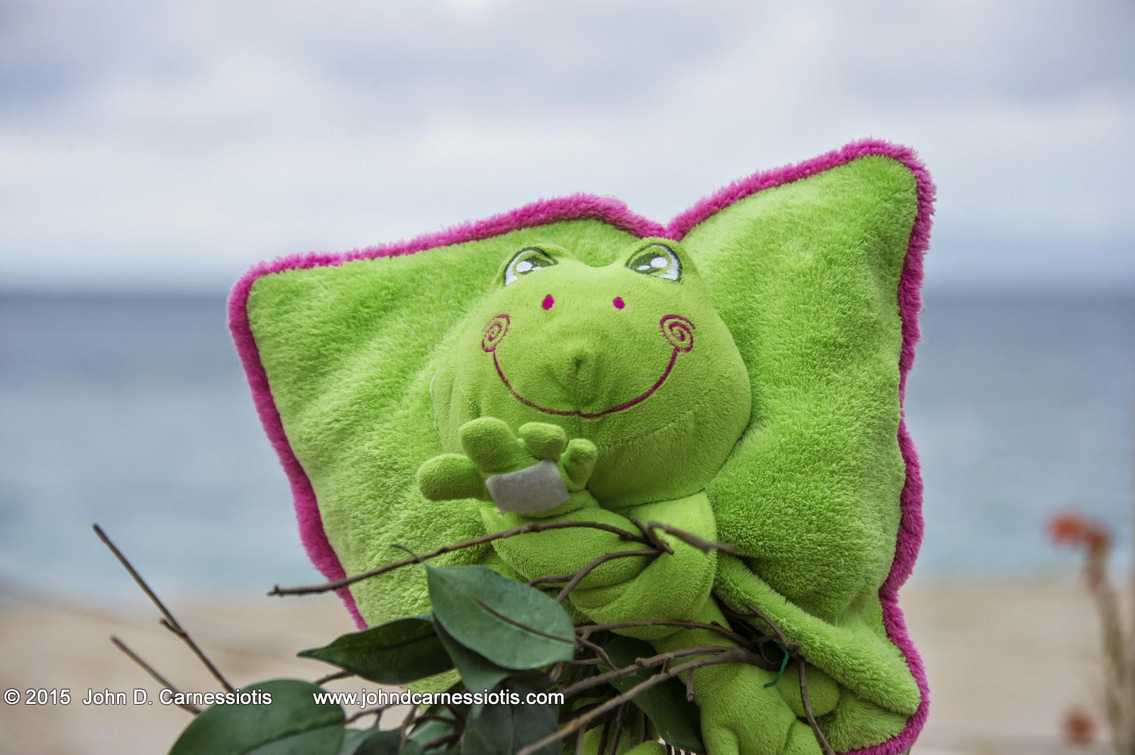 Στο κέντρο της παραλίας κάποιος έχει δημιουργήσει ένα πολύχρωμο installation με λούτρινα κι άλλα παιχνίδια, που έχει περιμαζέψει: