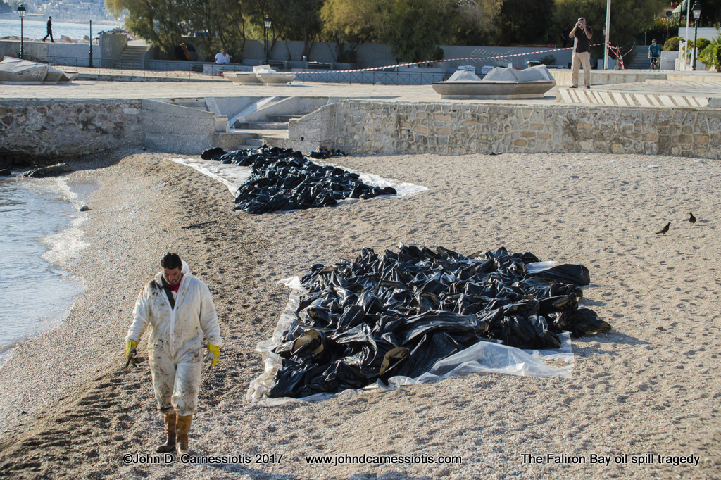Οι φωτογραφίες της συλλογής αυτής αποτυπώνουν μικρό μόνον μέρος της ζημιάς στην Φαληρική ακτή, τους διστακτικούς και απορημένους θαμώνες της παραλίας, κάποιους "θαρραλέους", που αψηφούν τις απαγορεύσεις κολύμβησης, και, τέλος, τις προσπάθειες ενός μικρού, αλλά ηρωικού, συνεργείου να καθαρίσουν ό,τι μπορούν κι όπως μπορούν στην περιοχή του Φλοίσβου. Ο αγώνας είναι όχι μόνον άνισος, αλλά κυριολεκτικά συσίφειος, καθώς τα κύματα δεν σταματούν να ξεβράζουν πετρέλαιο στην ακρογιαλιά του Φλοίσβου, που πασχίζουν να καθαρίσουν...